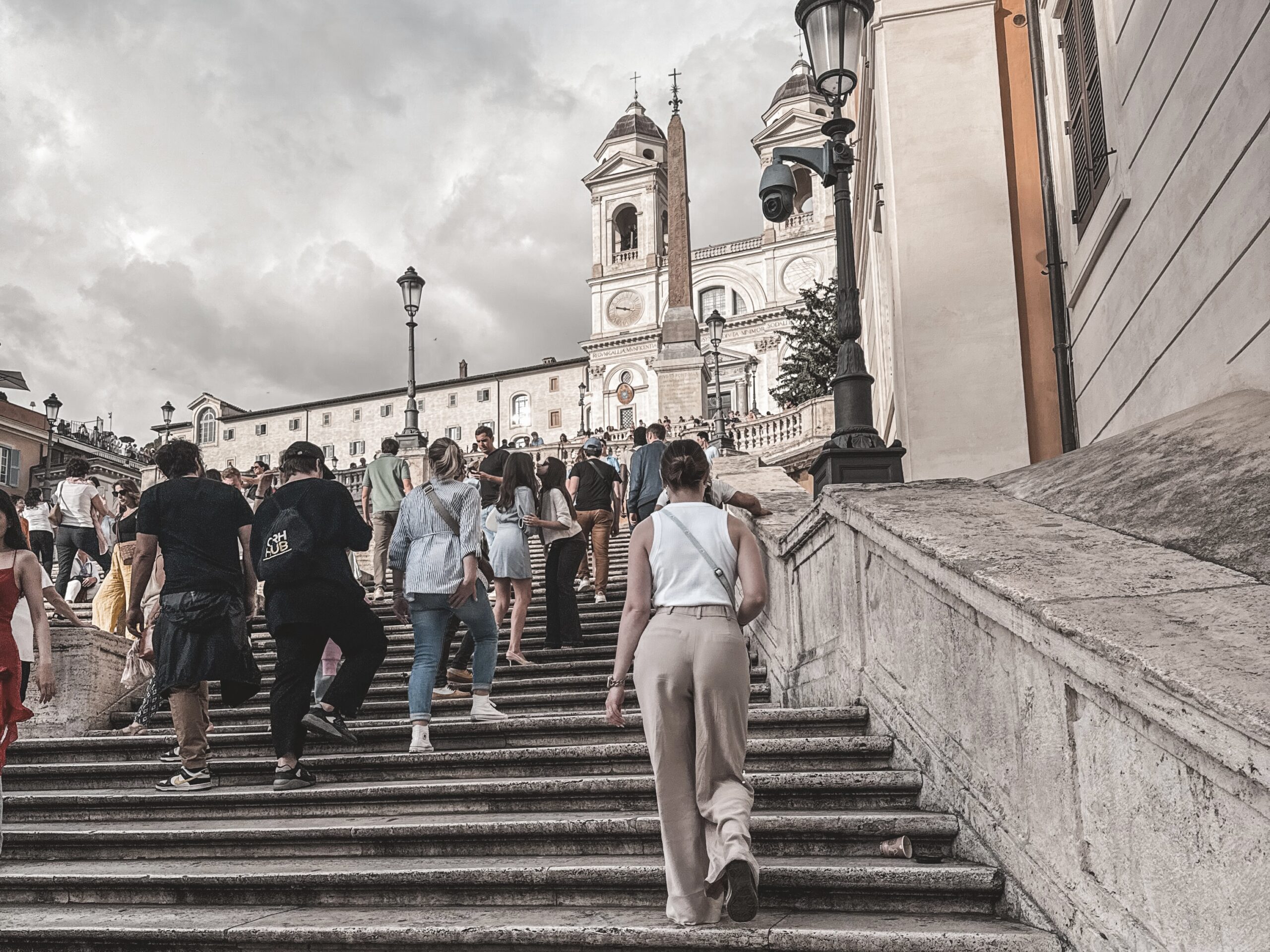The Spanish Steps, or otherwise known, Scalinata di Trinita dei Monti, is a landmark that was built in the 1700s. It features 135 steps, and as depicted in the photo, gets significantly busy in the afternoon lol.